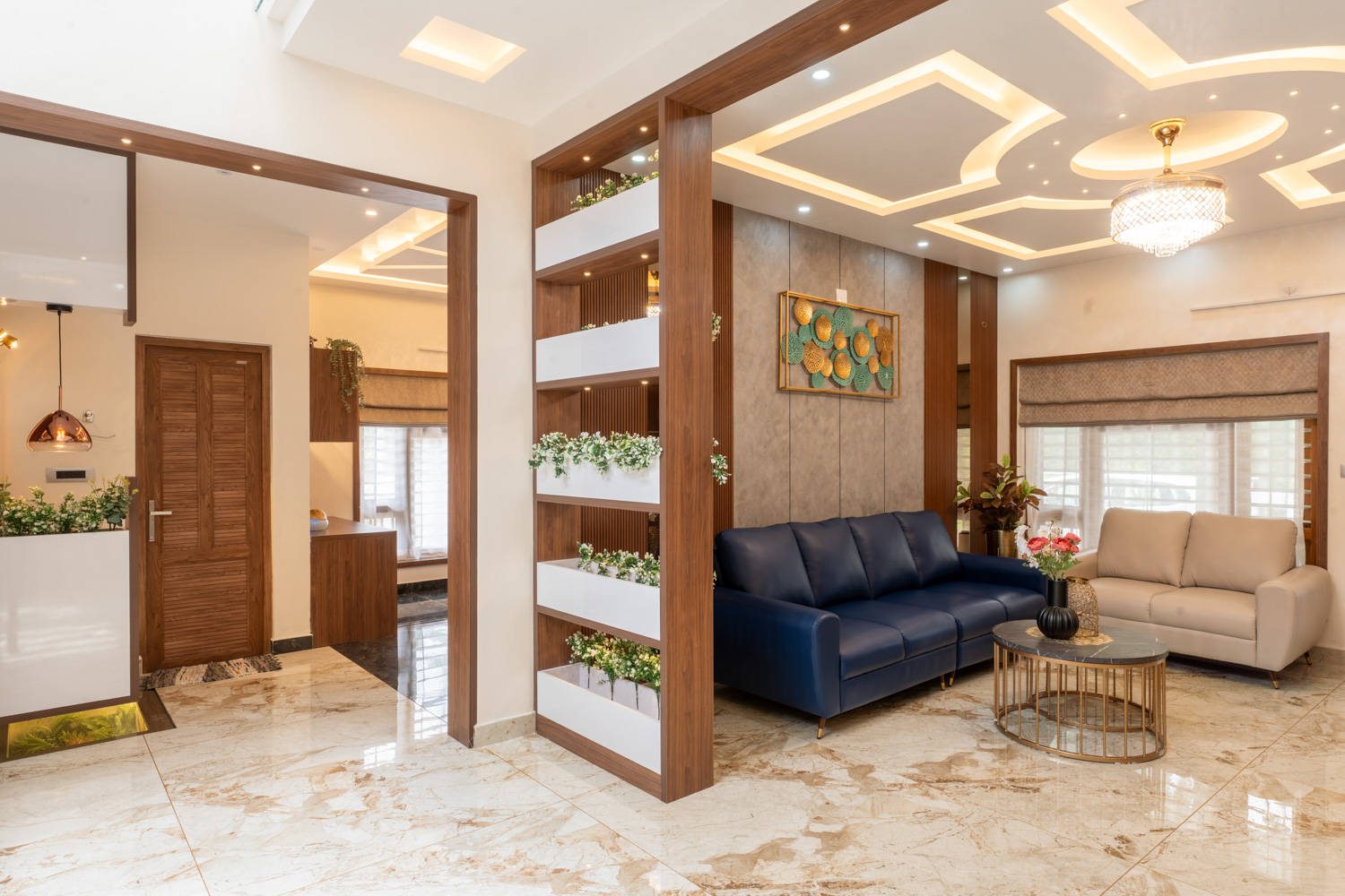 Shine is a beautifully executed home interior project located in Pattikkad, Thrissur. Designed for Mr. Shine and family, this home is a testament to modern design blended with warm, natural elements — creating a serene and inviting living space.